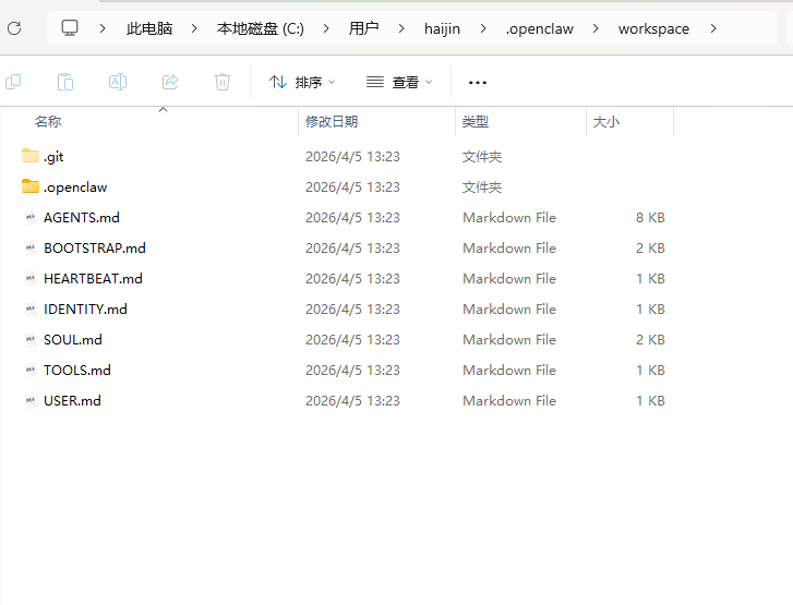 你的想目录:C:\Users\haijin\.openclaw\workspace