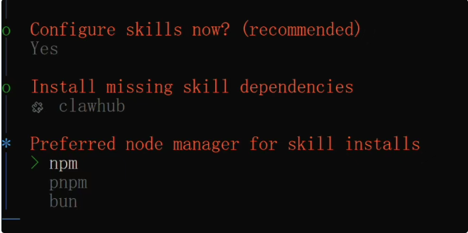 选择完技能后,还要选择安装技能的工具,用 npm 就行: