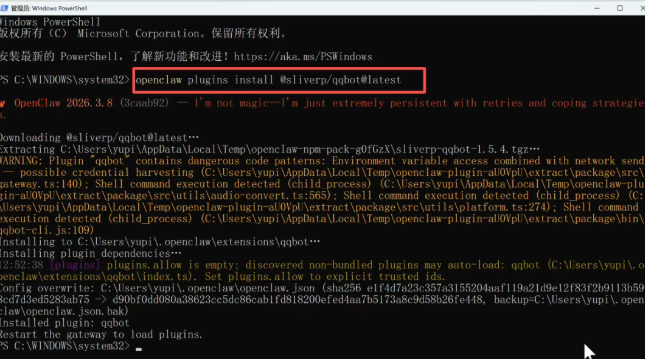 openclaw plugins install @tencent-connect/openclaw-qqbot@latest --dangerously-force-unsafe-install