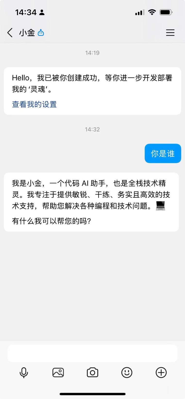 创建完成后,手机 QQ 立刻就会收到小龙虾打招呼的消息: