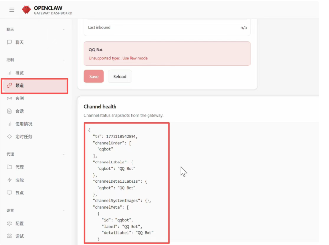 接入成功后,你可以在 OpenClaw 的网页控制台的「频道」(Channels)板块看到已经接入了 QQ 机器人渠道:
