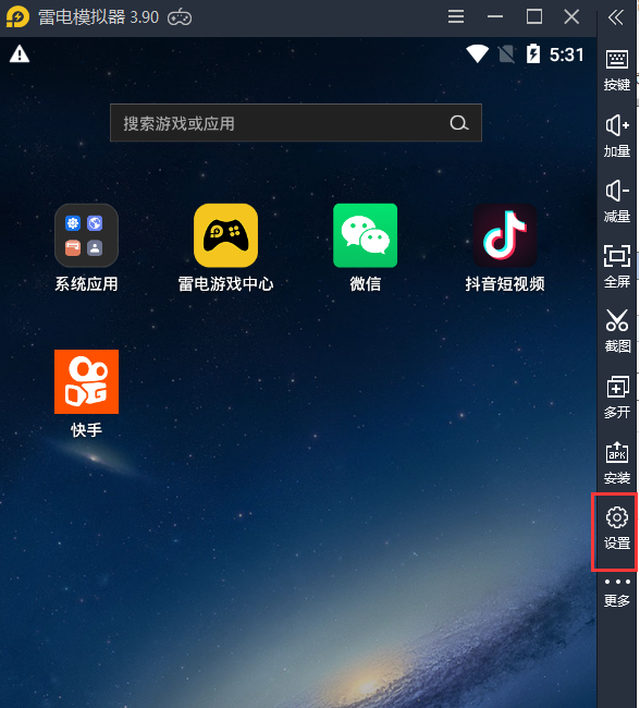 9、安装好后,桌面双击打开雷电模拟器,点击设置