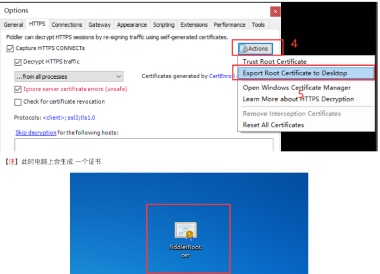 6、点击Actions,点击Export Root Certificate to Desktop